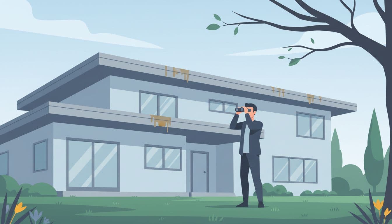 Pick a dry day with good light. Then stay on the ground first and use binoculars or your phone's zoom. Flat roofs can look harmless, but spring surfaces can still be slick, soft, or weaker than they seem after months of snow load and ice.